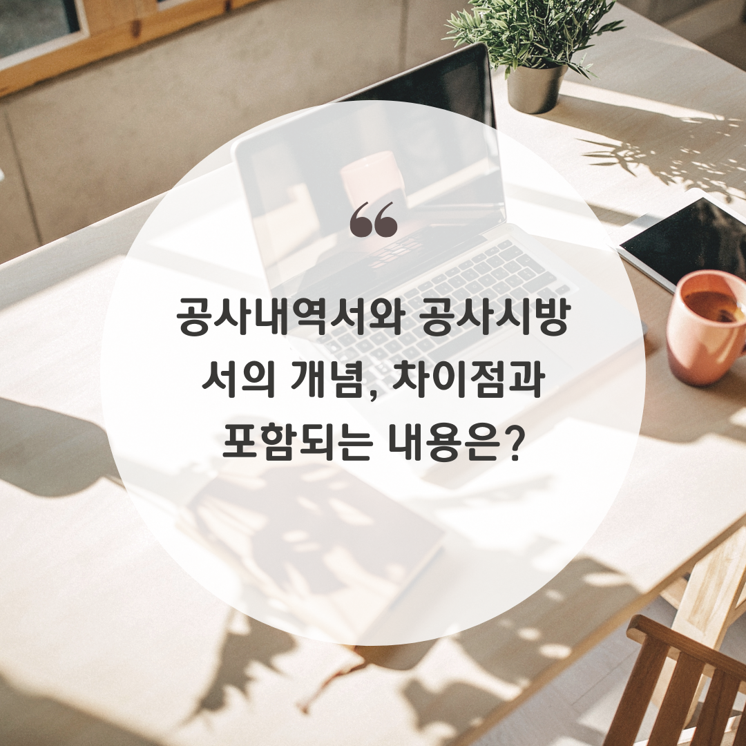 오늘은 공사내역서와 공사시방서의 개념, 차이점과 포함되는 내용에 대해서 알아볼 수 있도록 하겠습니다.